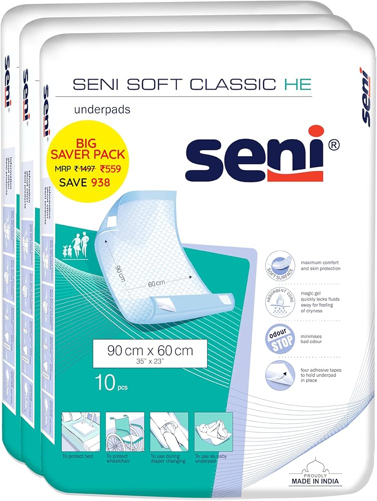 At Eazycure, we know that managing incontinence or post-operative care involves more than just wearing a diaper; it requires keeping the entire resting environment clean and dry. The Seni Soft Underpad is the perfect complementary product to our adult diaper range. Whether you are managing home care in Kumbakonam, Thanjavur, Karaikal, or near Mutt Street, these pads save you from the exhausting task of constantly washing heavy bedsheets.