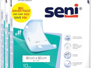 underpads₹468.00Original price was: ₹468.00.₹160.00Current price is: ₹160.00. Add to cart“The Seni Soft Underpad provides reliable protection against leaks and spills. Featuring a Superabsorbent Core that locks in moisture and an anti-slip, waterproof backing, it prevents mattress damage while keeping the patient comfortable. Ideal for incontinence management, wound care, or diaper changes. Available in multiple sizes. Sold by Eazycure.“